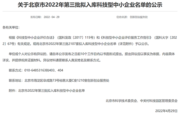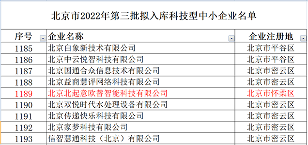 近日,北京市科學(xué)技術(shù)委員會(huì)、中關(guān)村科技園區(qū)管理委員會(huì)公示了北京市2022年第三批擬入庫(kù)科技型中小企業(yè)名單,北京北起意歐替智能科技有限公司入選。